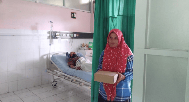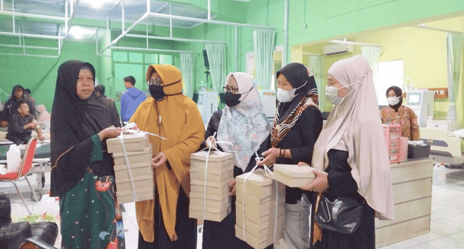 Tampak Ibu Ellya Rosana bersama tim relawan PC Wanita Al Irsyad Purwokerto menyusuri area rumah sakit untuk membagikan paket makan siang kepada para penunggu pasien yang harus menghabiskan waktu cukup lama di rumah sakit dalam kondisi terbatas.