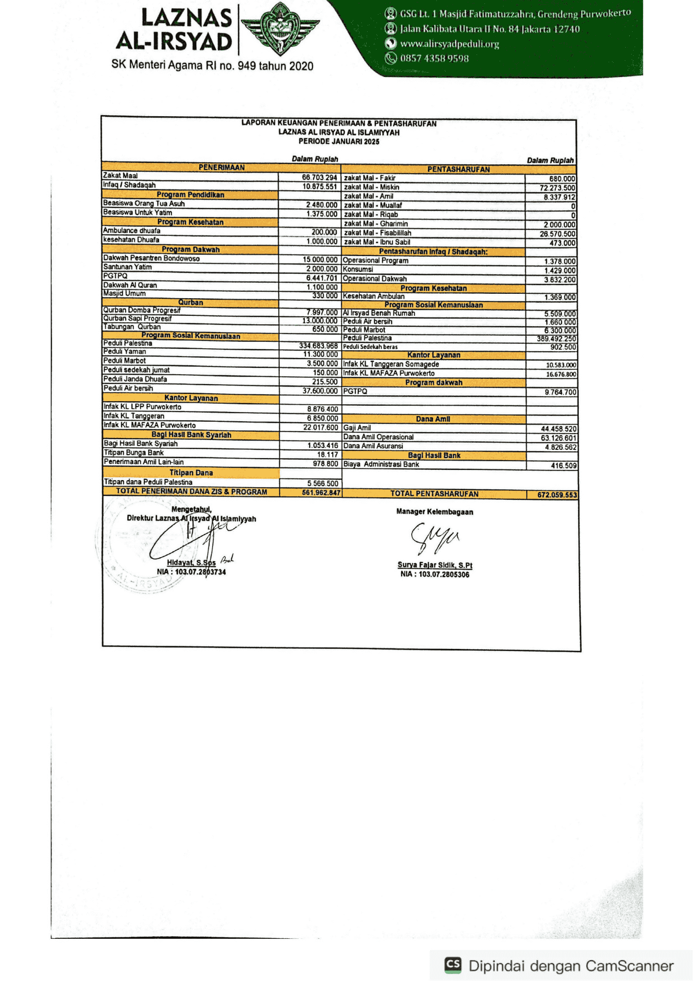 Penerimaan dan Pentasharufan Bulan Januari 2025