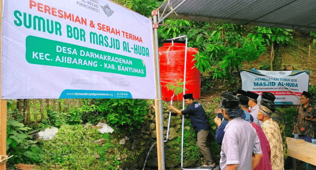 Banyumas, 14 November 2025 — LAZNAS Al Irsyad Purwokerto resmi menggelar peresmian dan serah terima sumur bor untuk Masjid Al Huda di Desa Darmakradenan, Kecamatan Ajibarang, Kabupaten Banyumas. Acara yang berlangsung pada Jumat siang pukul 13.00 WIB di halaman masjid tersebut dihadiri oleh Kepala Desa, pengurus takmir, masyarakat, serta tim Divisi Program LAZNAS Al Irsyad Purwokerto.