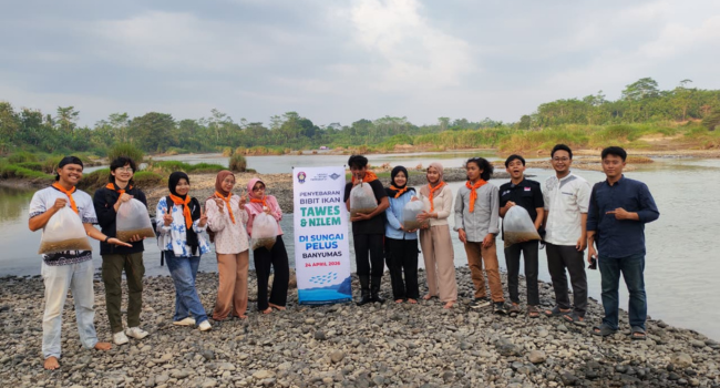 Banyumas — Memperingati Hari Bumi 2026, Unit Pelaksana Lapangan (UPL) Mahasiswa Pecinta Alam Universitas Jenderal Soedirman (Mapala Unsoed) berkolaborasi dengan LAZNAS Al Irsyad Purwokerto menggelar aksi lingkungan berupa penyebaran 11.500 bibit ikan nilem dan tawes di sejumlah aliran sungai di Kabupaten Banyumas pada Jum’at (24/04).